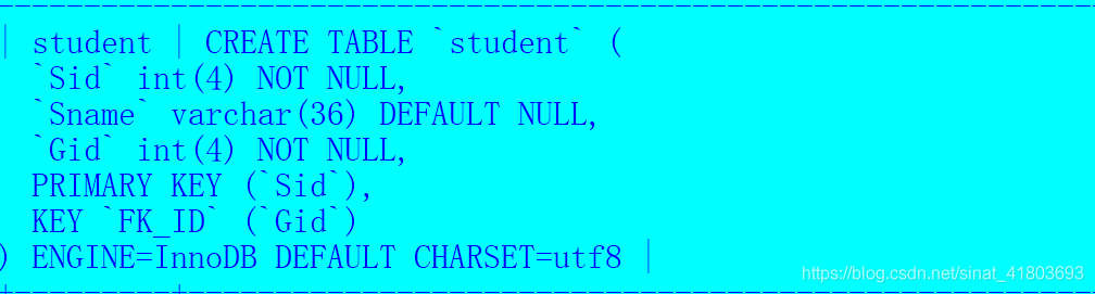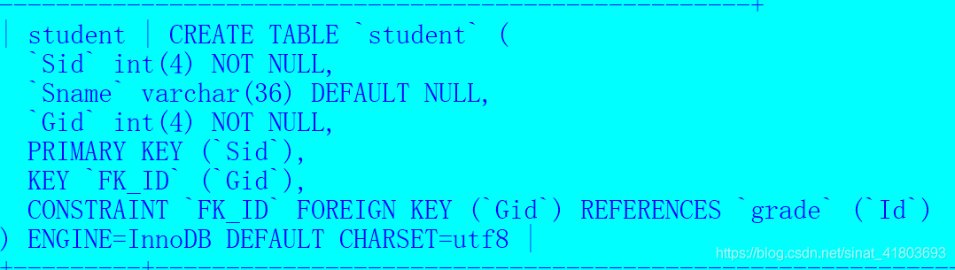 //或在建表的同时创建外键foreign key (gid) references grade (id);