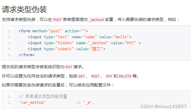 请求类型伪装:支持请求类型伪装,可以在post表单里面提交——method变量,传入需要的伪装的请求类型,例如