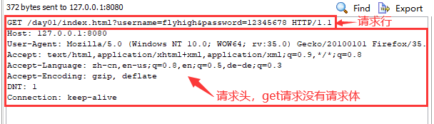 get请求:只包含请求行和请求头