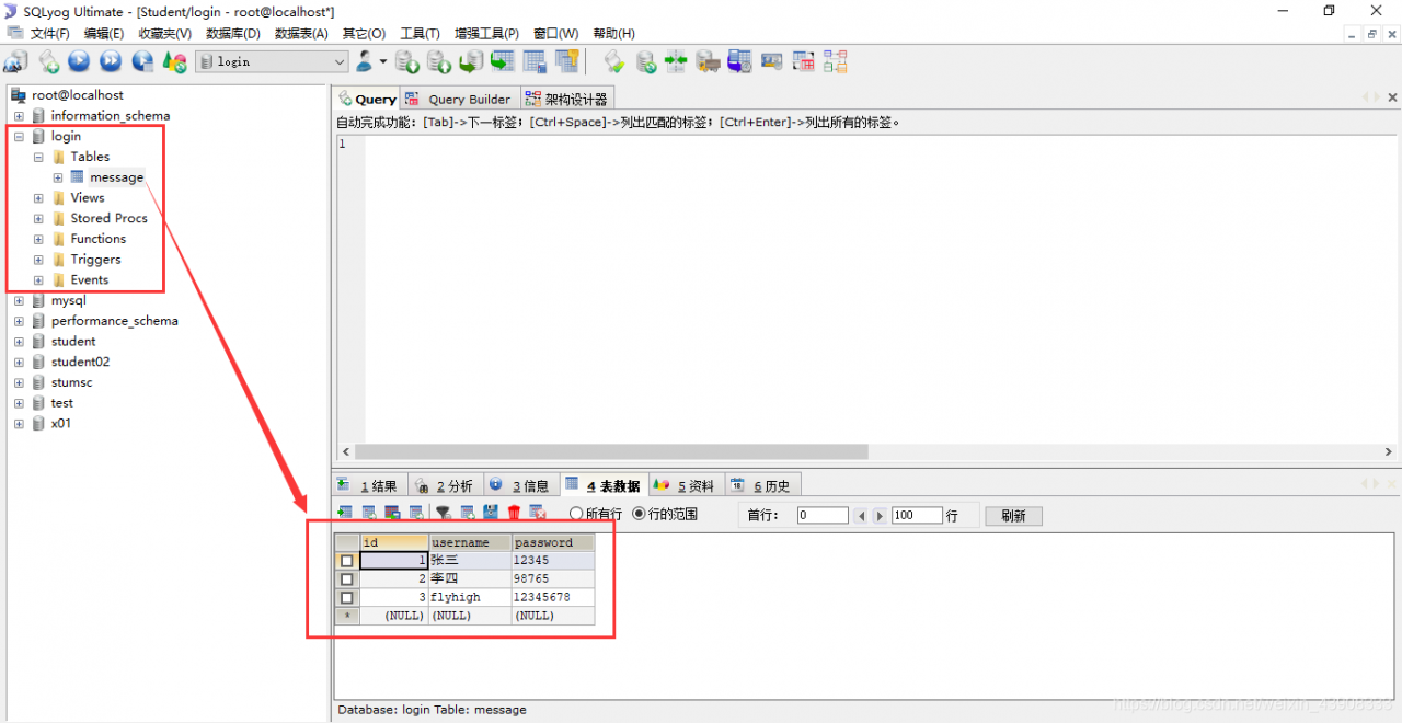 18.数据库中的message表中数据