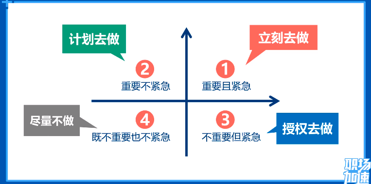 另外,也要注意划分好第一和第三类事,都是紧急的,分别就在于前者能带来价值,实现某种重要目标,而后者不能。