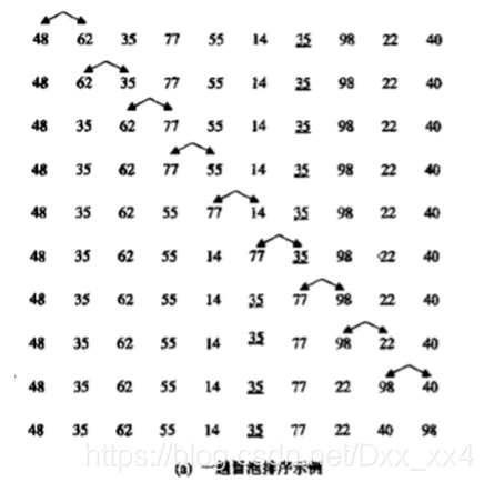 值得注意的是,若在一趟排序中没有发生任何一次交换,则说明该序列已经有序。