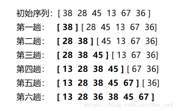 依次类推,直到 i = size-1 时,表明所有的元素都在有序序列中,即该序列排序完成。