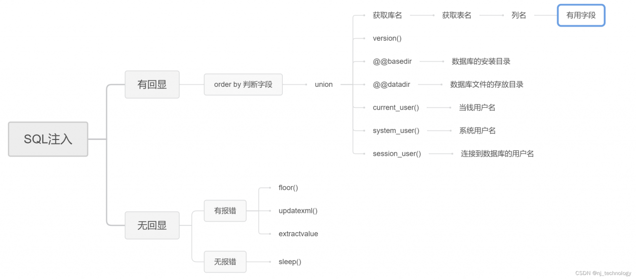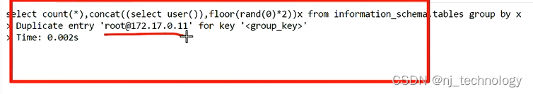 select * from user where id=1 and length(user())>10; #如果user()用户长度>10,返回就正常,否则返回为空. 这个是完整的查询语句.