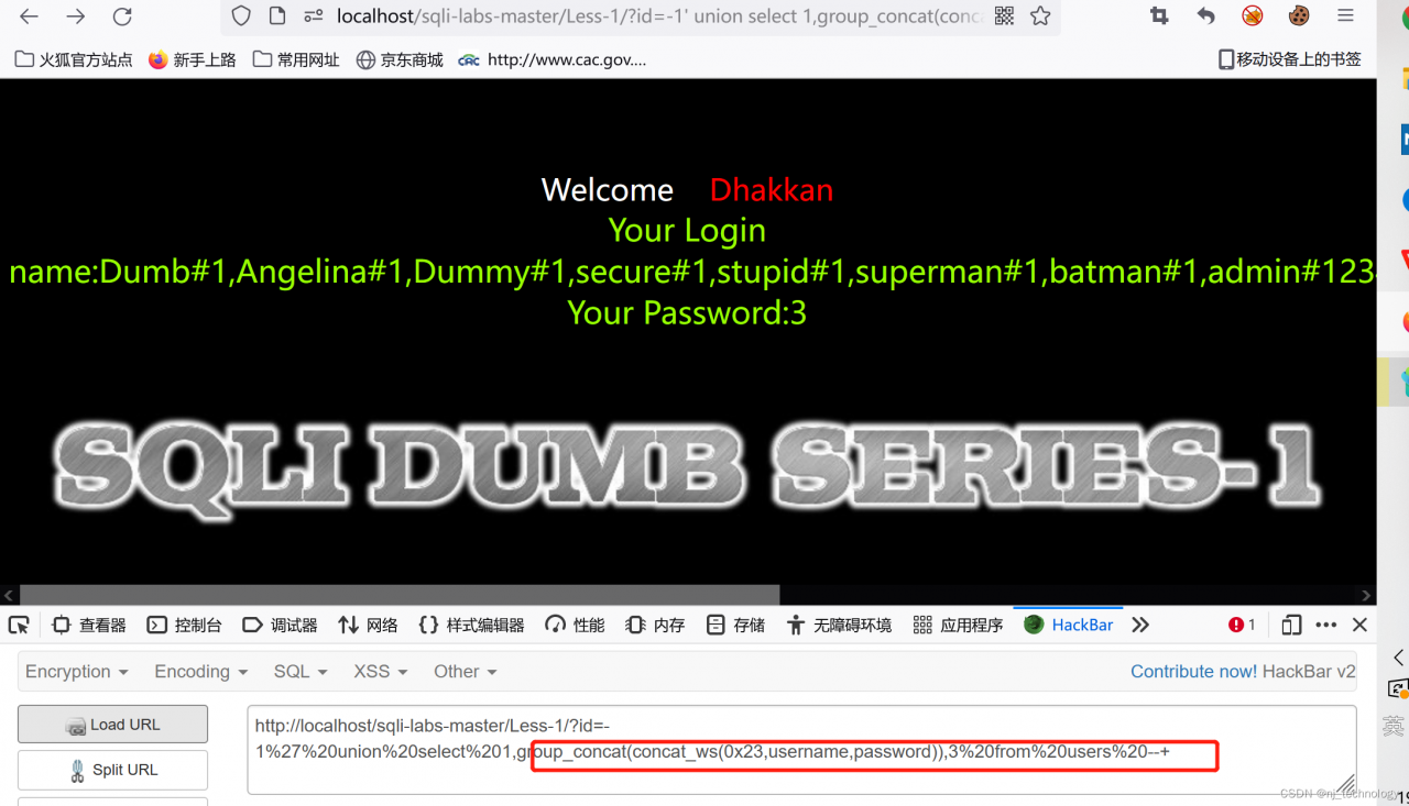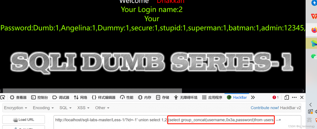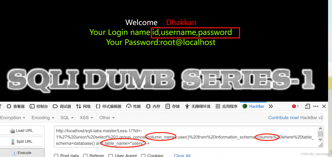 我们知道了users中有三个字段 id 、username 、password,我们现在爆出每个字段的数据