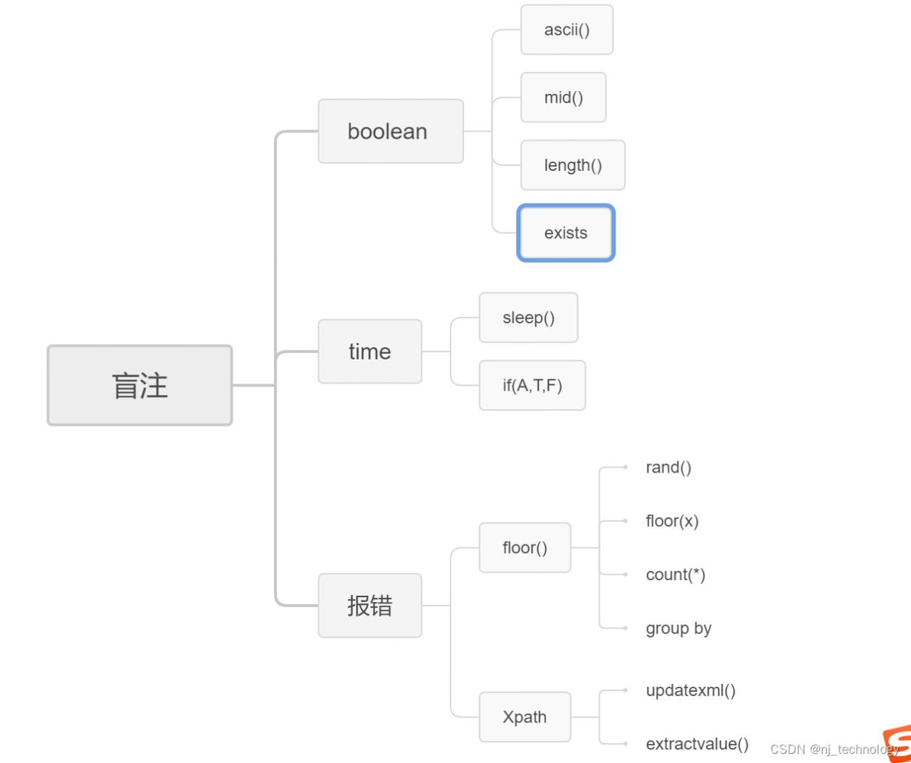 http://127.0.0.1/sqli/Less-5/?id=1' and exists(select username from admin) //如果已经证实了存在admin表,那么猜测是否存在username字段