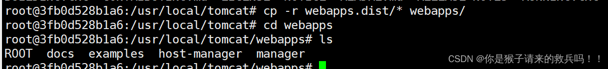 那是因为tomcat镜像是阉割版,webapps里面是空的。我们进到容器里