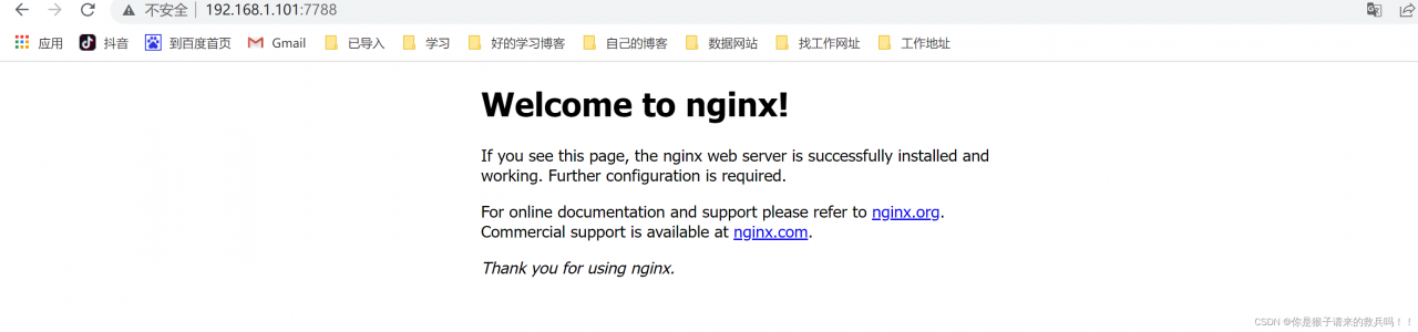 (3) 运行镜像,并生成容器: docker run --name nginx01 -p 7788:80 nginx