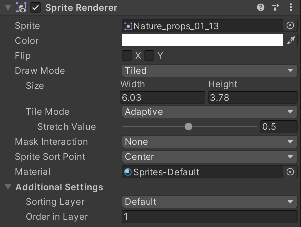 所有 2D 游戏中游戏资源(除 UI 外)都是通过 Sprite Renderer 让我们看到的,它是 2D 游戏开发中的一个极为重要的组件