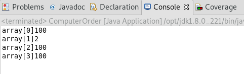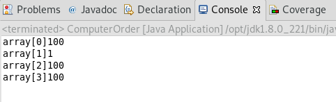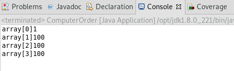 1 public class ComputerOrder { 2 public static void main(String []args) { 3 int [] array = new int [] { 4 100,100,100,100 5 }; 6 int i = 0; 7 array[i + 1] = i = 1; 8 //array[i] = ++i; 9 //array[i++] = i++; 10 //array[++i] = i++; 11 //array[++i] = ++i; 12 //array[i++] = i = i + 1; 13 14 for(int temp = 0;temp < array.length;temp++) { 15 System.out.println("array["+temp+"]"+array[temp]); 16 } 17 } 18 19 }