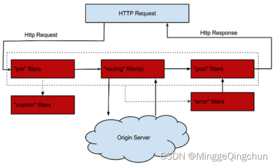 POST:这种过滤器在路由到微服务以后执行。这种过滤器可用来为响应添加标准 的 HTTP Header、收集统计信息和指标、将响应从微服务发送给客户端等。 ERROR:在其他阶段发生错误时执行该过滤器。