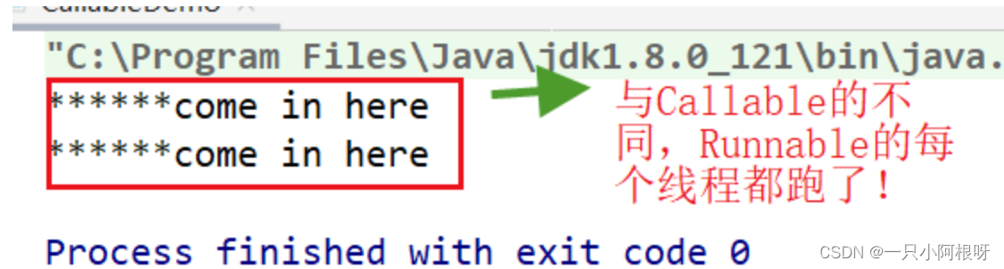 只执行了一次,因为一个futureTask,不管几个线程调用,调用的都是同一个futureTask对象!而且Runnable接口就不一样了: