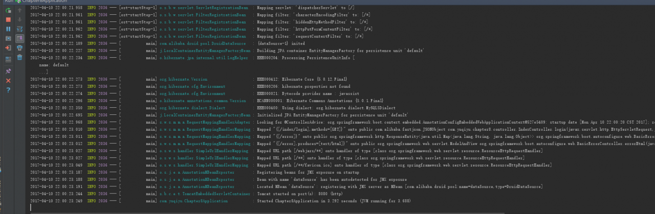 运行日志如下图所示,如果没有出现异常证明项目运行成功了,如果出现异常请根据对应异常检查错误。