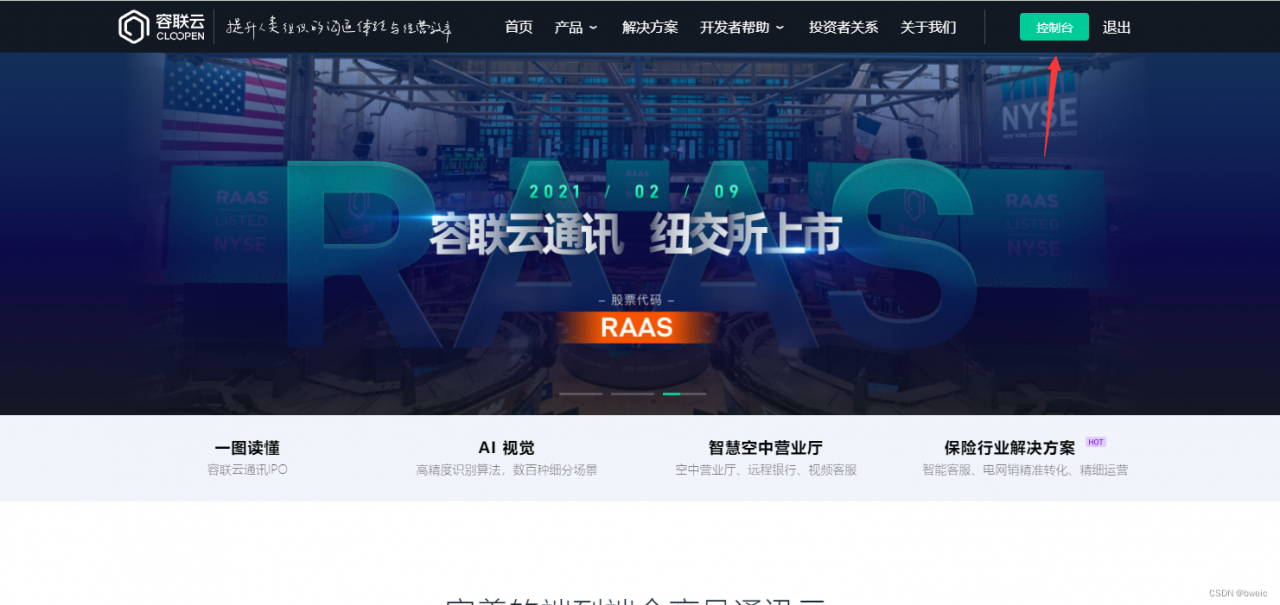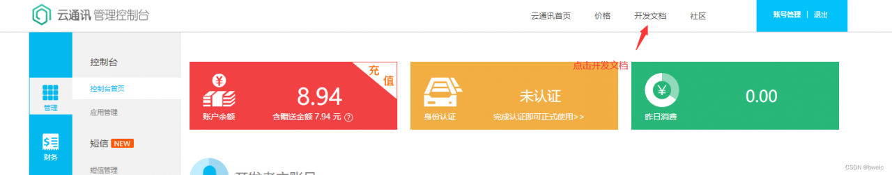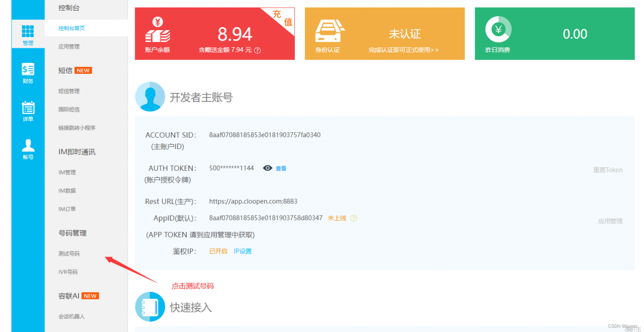 1.登录容联云官网https://www.yuntongxun.com