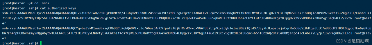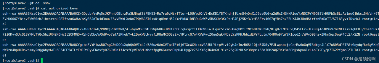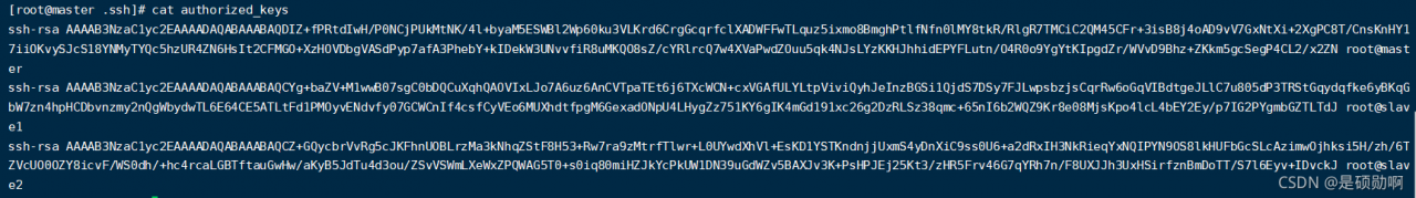 2.分别将公钥分发到另外两台机器的authorized_keys文件中: