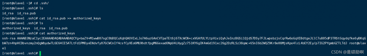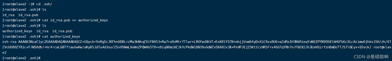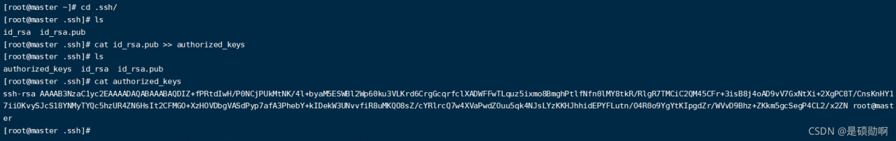关键步骤:cat id_rsa.pub >> authorized_keys