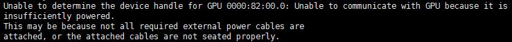 Unable to determine the device handle for GPU 0000:82:00.0: Unable to communicate with GPU because it is insufficiently powered.