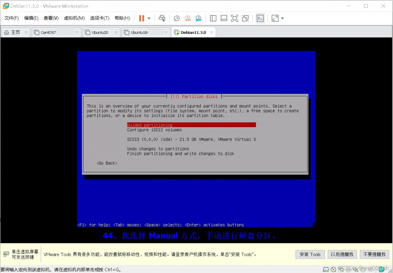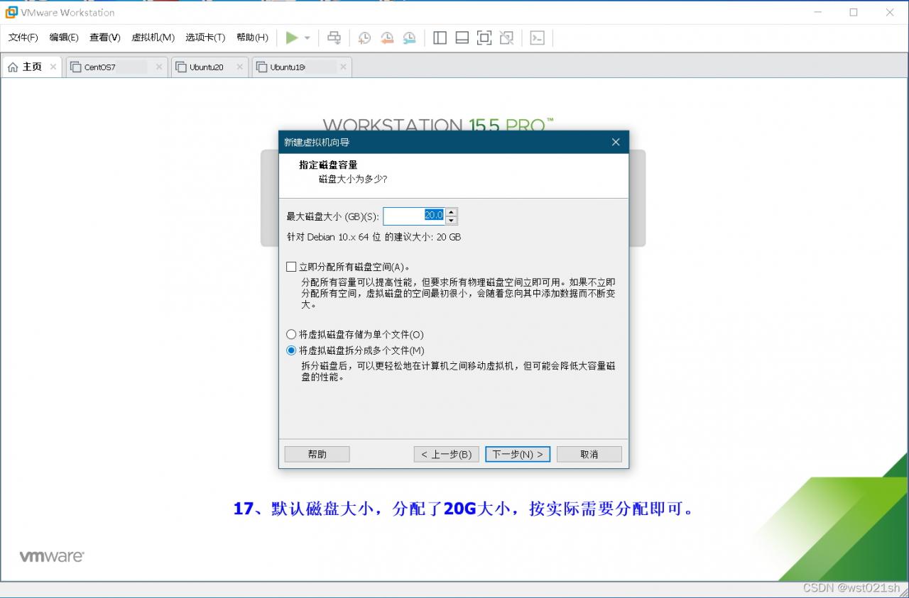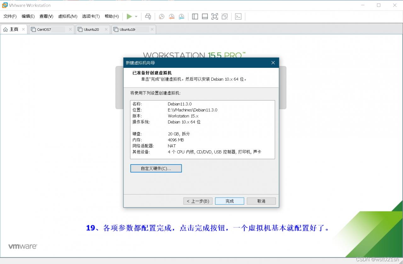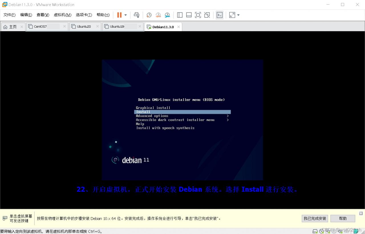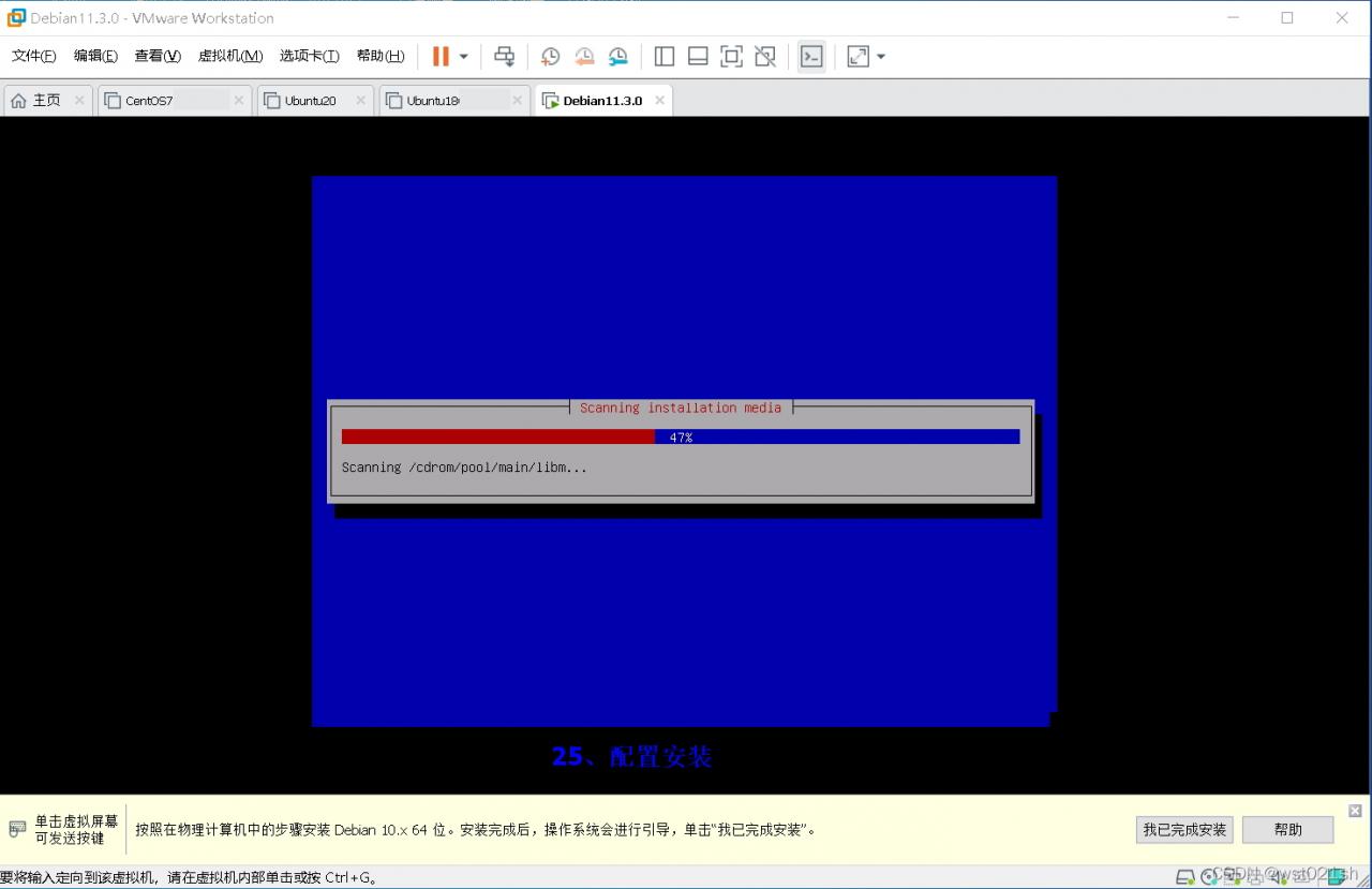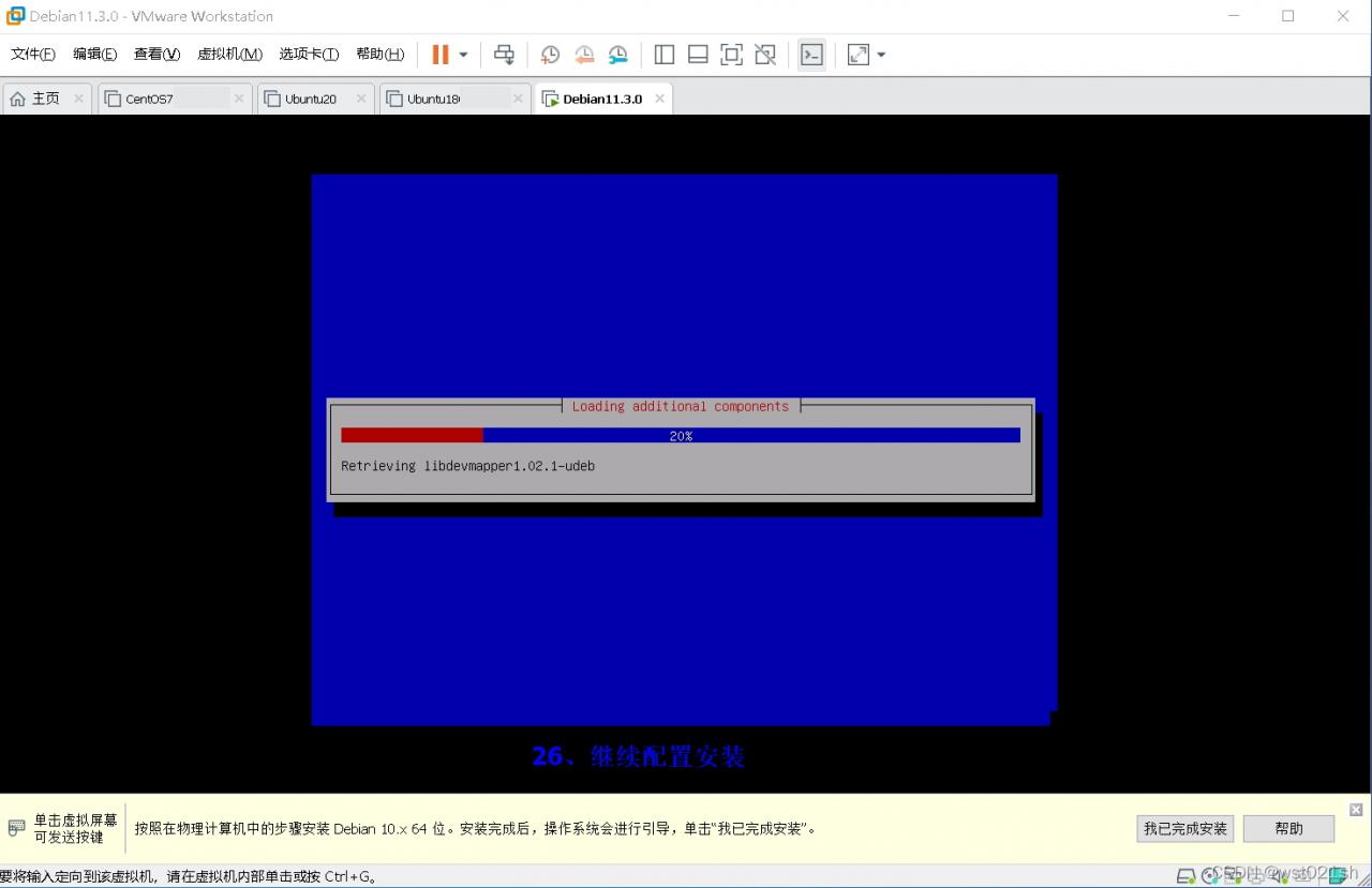 从图1 ~ 图20 操作步骤,详细的完成了VM配置创建虚拟机的过程了,接着继续安装系统。