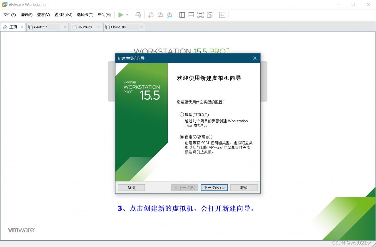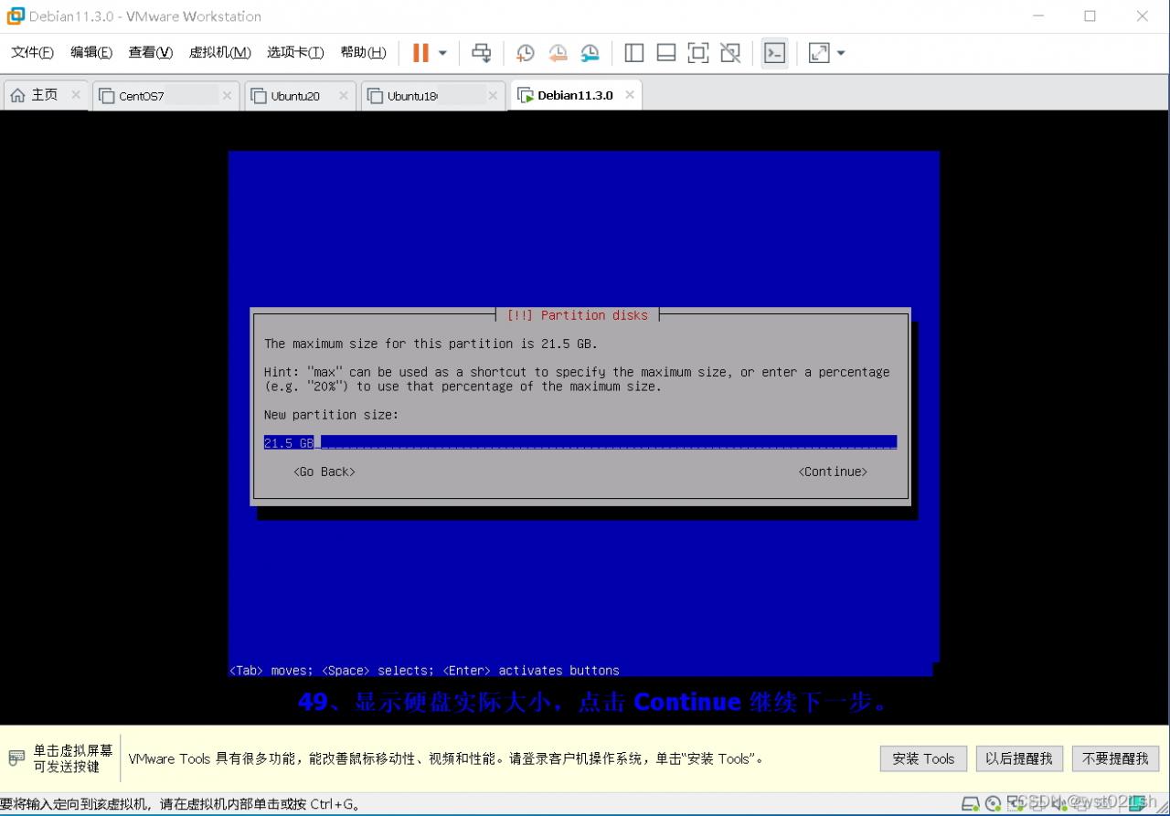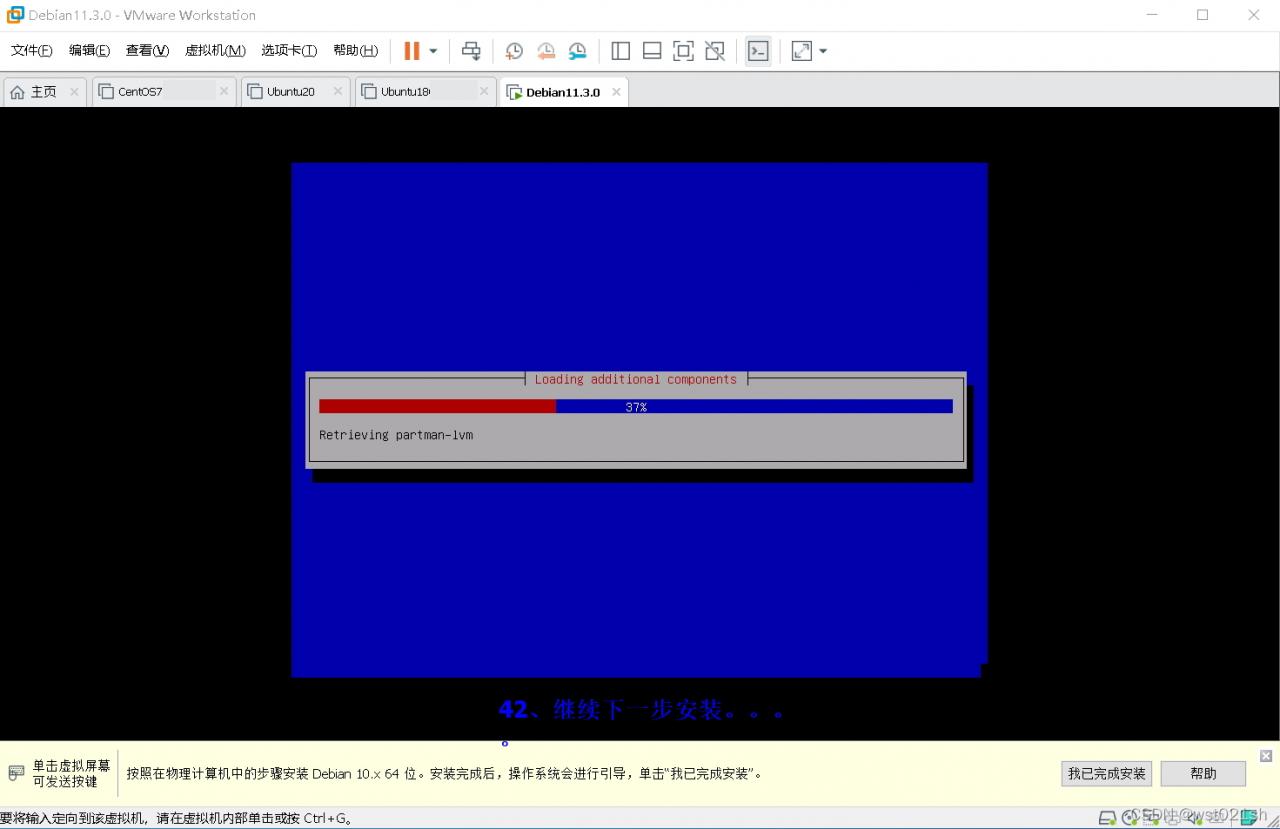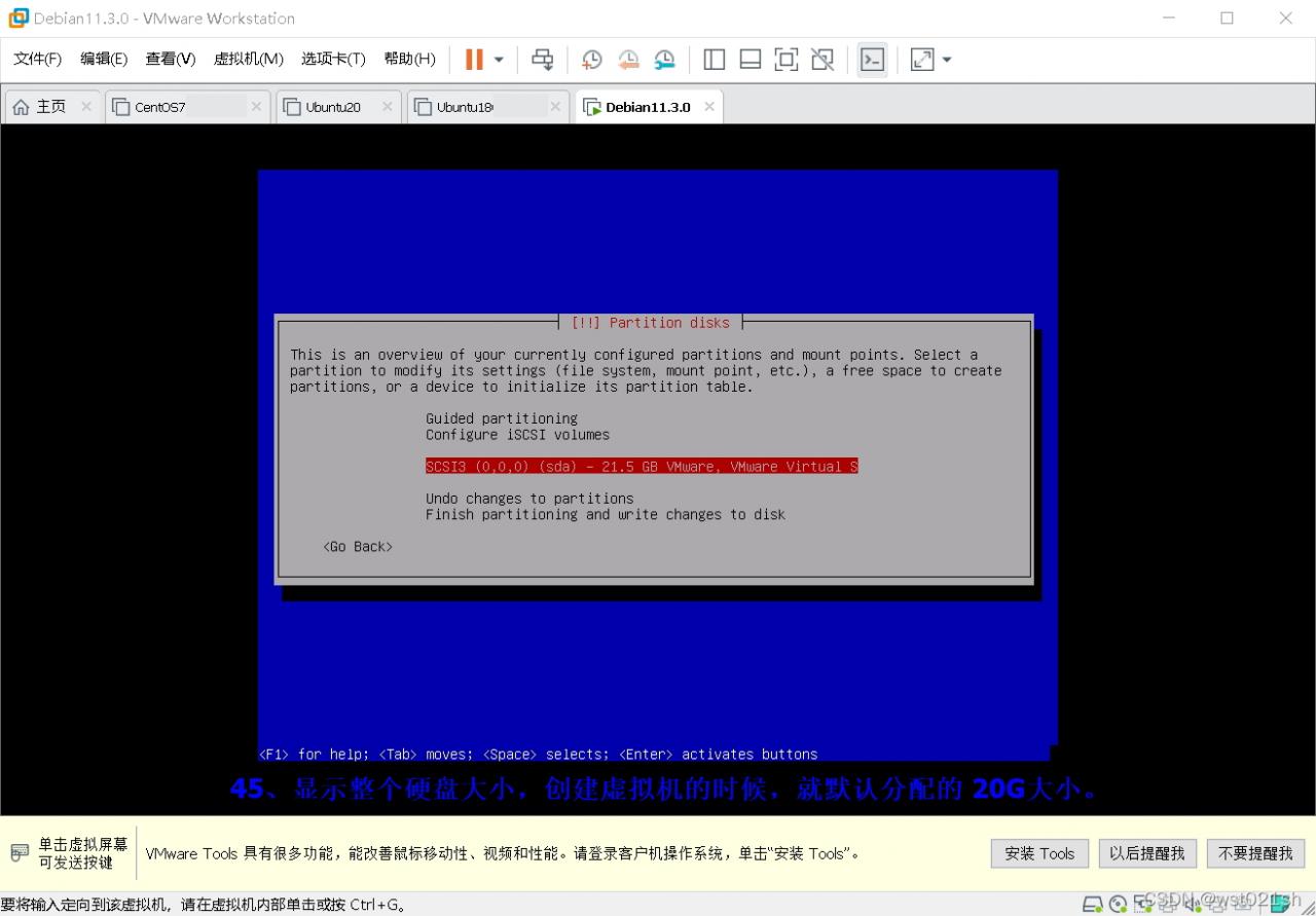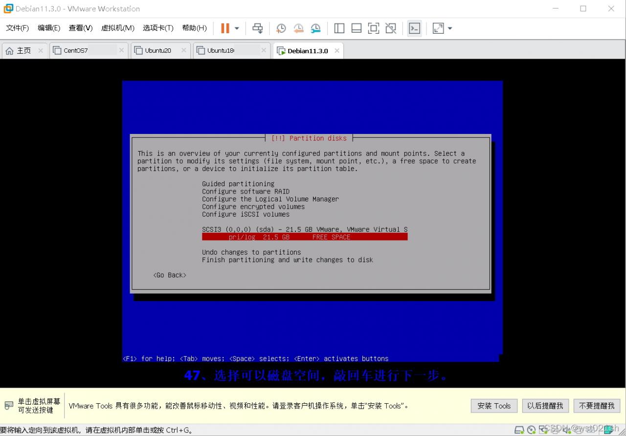 从图1 ~ 图20 操作步骤,详细的完成了VM配置创建虚拟机的过程了,接着继续安装系统。