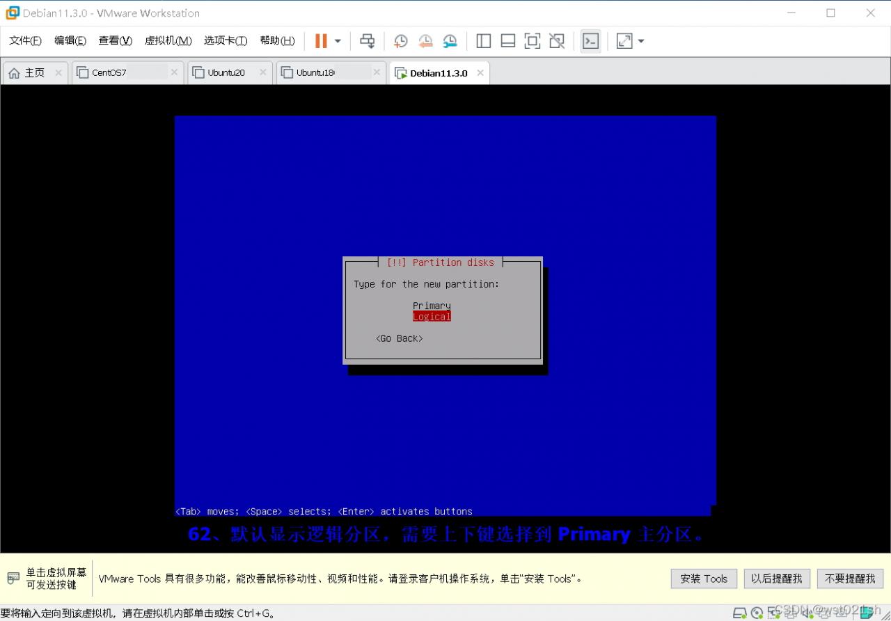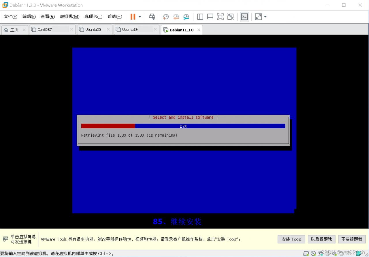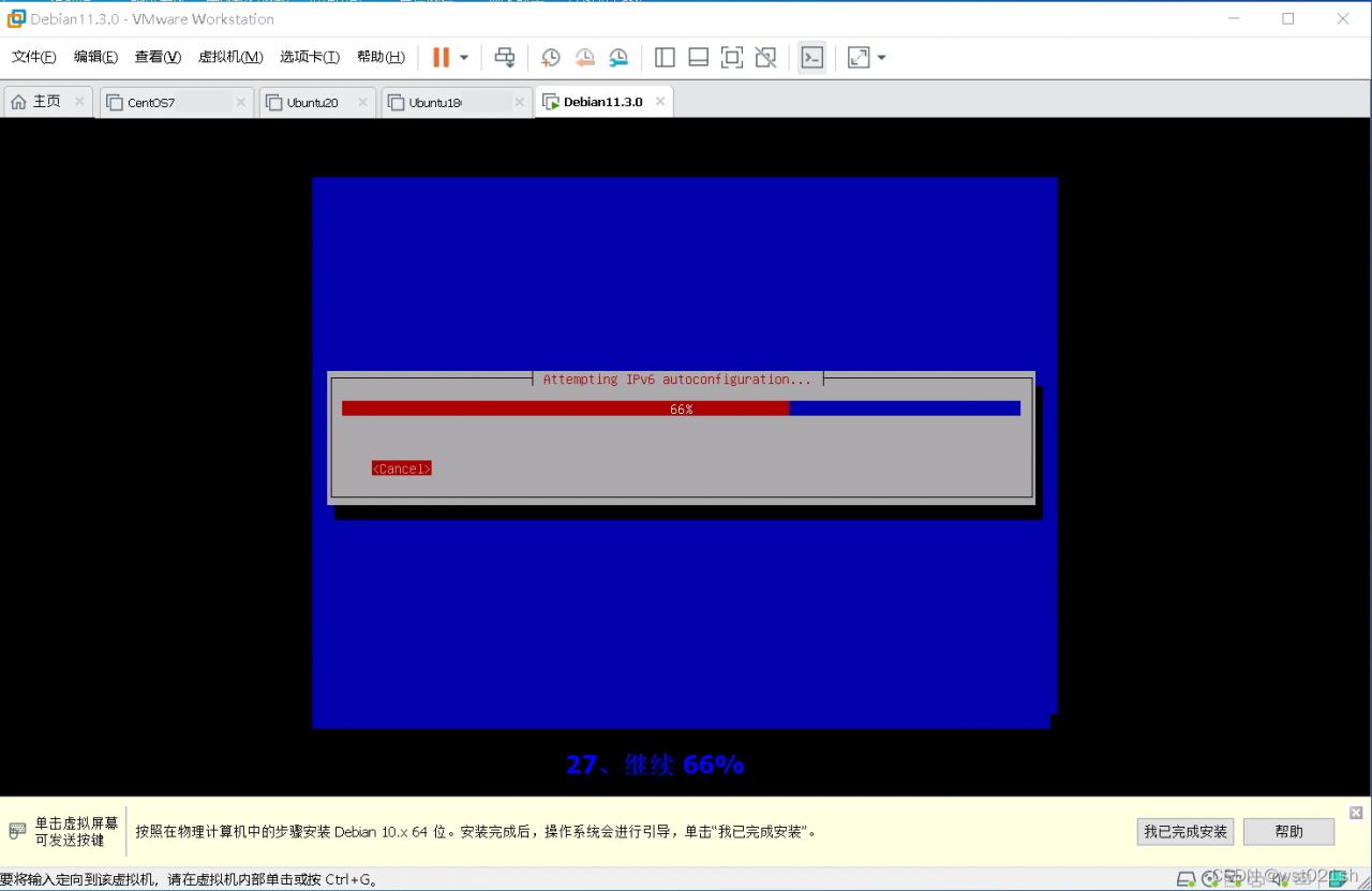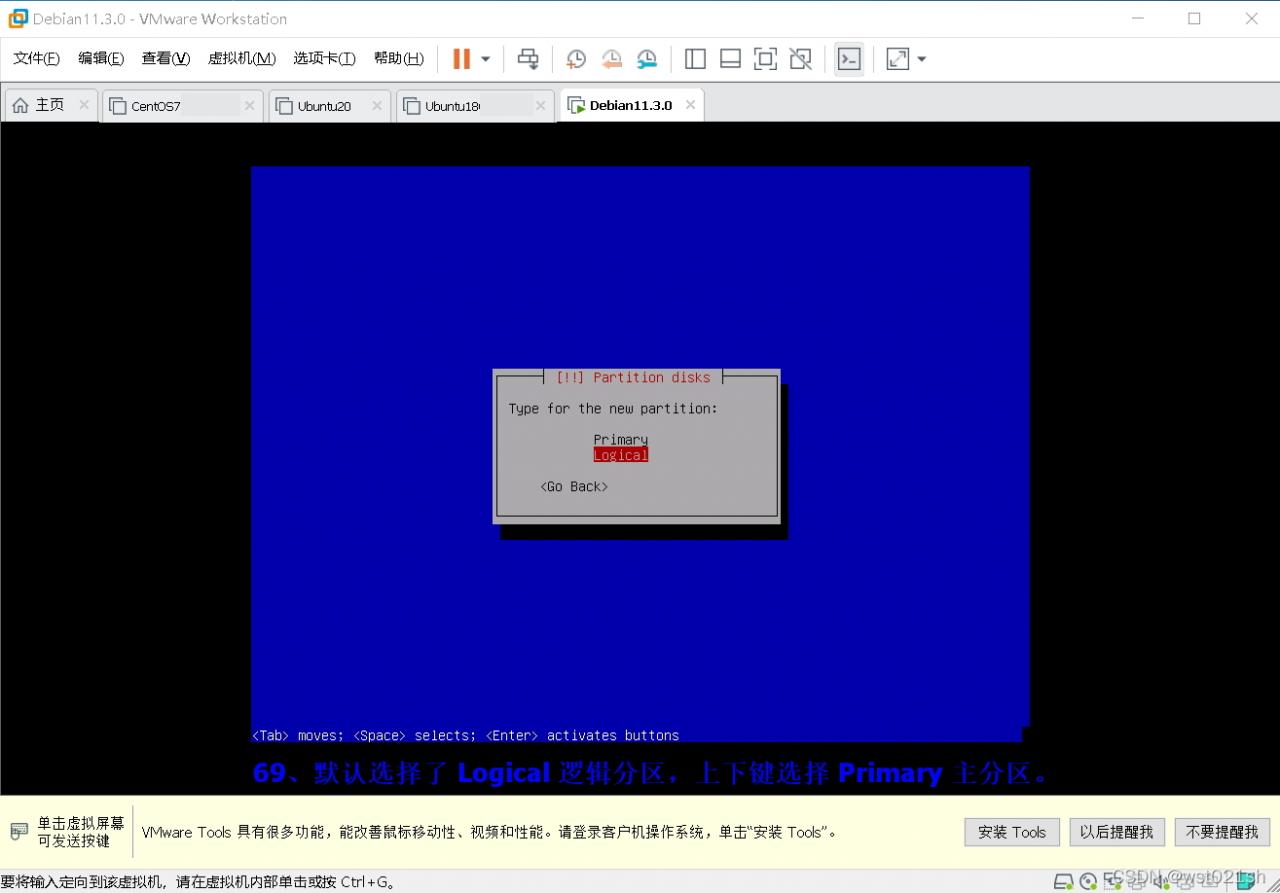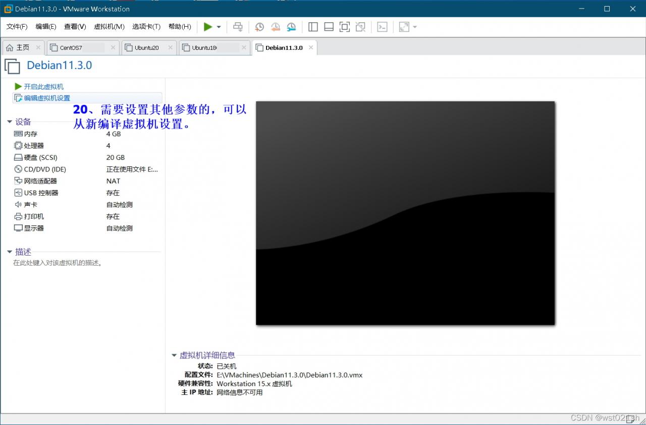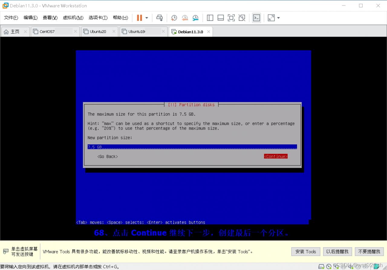 从图1 ~ 图20 操作步骤,详细的完成了VM配置创建虚拟机的过程了,接着继续安装系统。