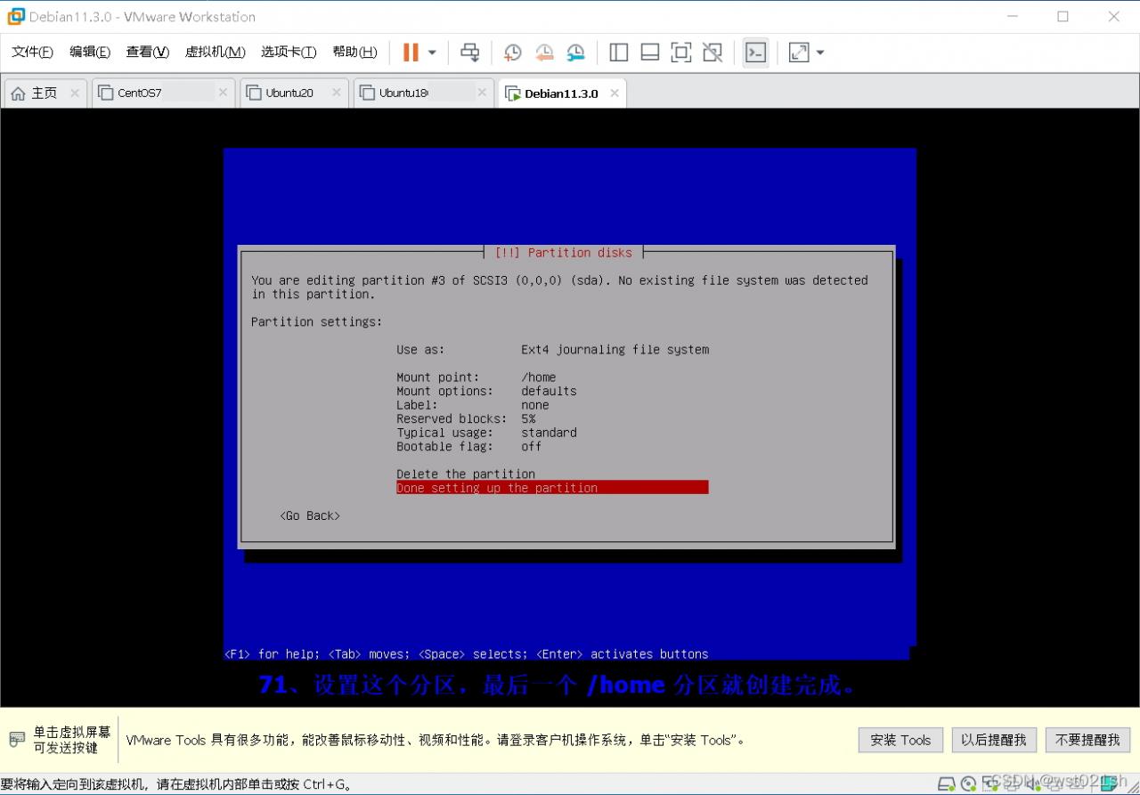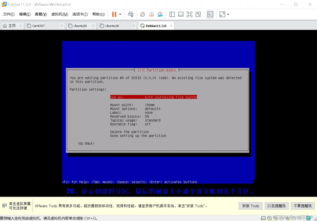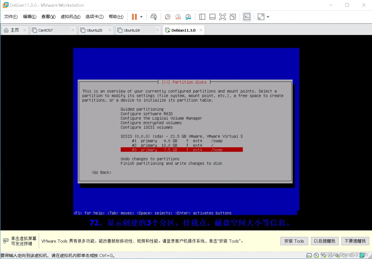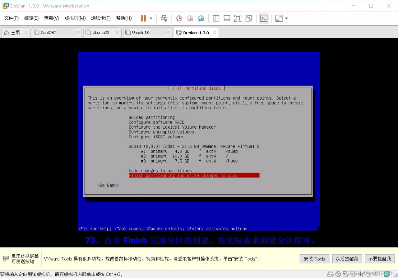 使用 VMware 平台搭建,详细操作步骤,都在截图里文字说明了。