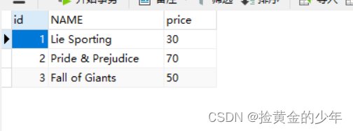 INSERT INTO book(NAME, price) VALUES('Lie Sporting', '30');