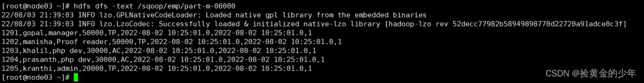 hdfs dfs -text /sqoop/emp_conn/part*