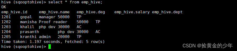2、MySQL导出数据到emp_hive表中