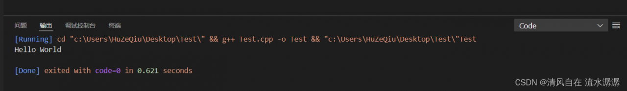 再来测试一下C++,代码也是输出Hello World。(别问为什么不用其他的代码,问就是菜,啥也不会)