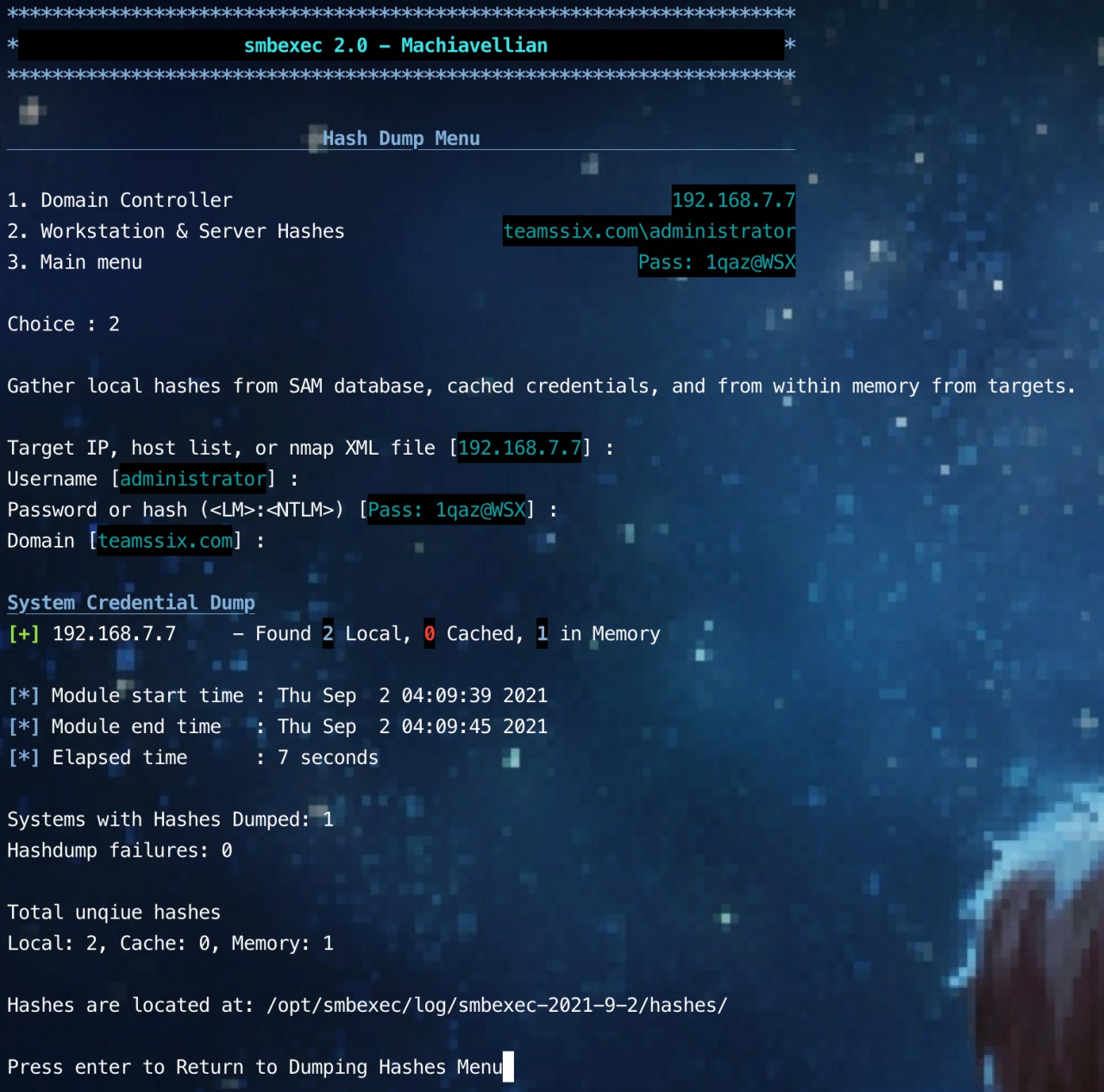 安装完后,在终端里输入 smbexec 就会显示 smbexec 的主菜单,分别如下: