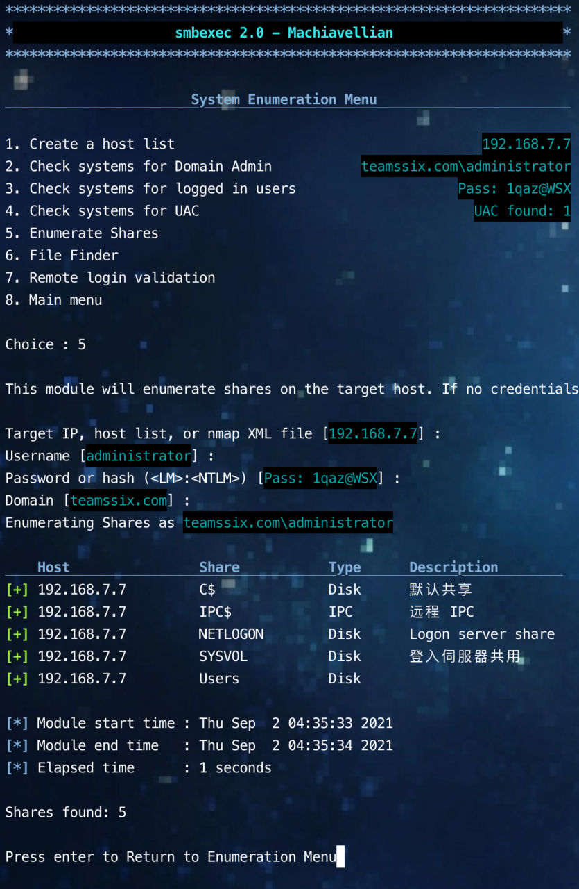 5. Enumerate Shares // 获取目标系统中的网络共享目录