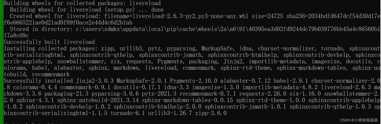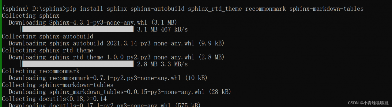 pip install sphinx sphinx-autobuild sphinx_rtd_theme recommonmark sphinx-markdown-tables