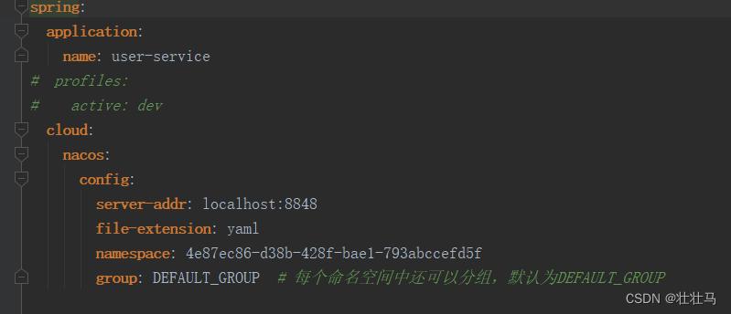 server-addr: localhost:8848 # nacos 配置中心地址