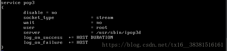 启动pop3和IMAP服务,修改/etc/xinetd.d/ipop3文件,将其中的“disable=yes”改为“disable=no”,保存该文件。