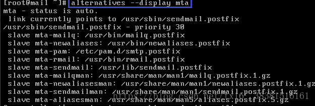 如显示当前MTA为sendmail,则输入“/usr/sbin/alternatives --set mta /usr/sbin/sendmail.postfix”修改为postfix。