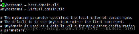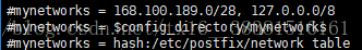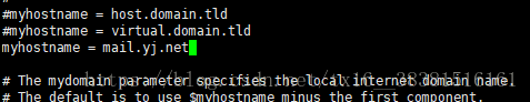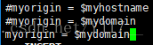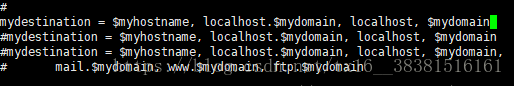 按ESC键到命令模式,输入“/mydestination”查找,并按“i”键进入编辑状态,在其后添加$mydomain,修改结果如下。