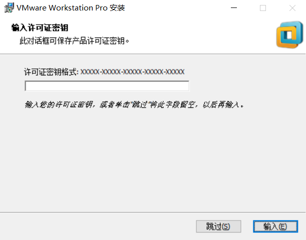 VMware的安装就好办了,全部默认选择“下一步”即可,有需要的童鞋也可以选择更改一下软件的安装目录。需要注意的是最后一步,会提示你是否现在输入许可证秘钥,选择“输入”后跳到如下页面: