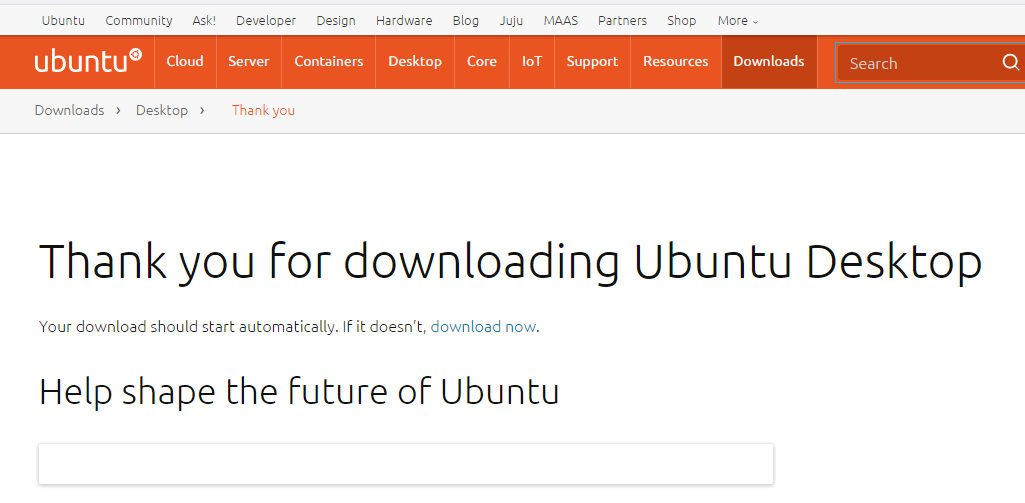 3、在Ubuntu桌面版下载页面直接点击“Download”按钮,进入如下页面自动下载Ubuntu镜像文件(如果没有弹出下载框,点击“download now”即可),Ubuntu 18.04 LTS镜像文件大小接近1.8G,所以下载时间可能会有点长;