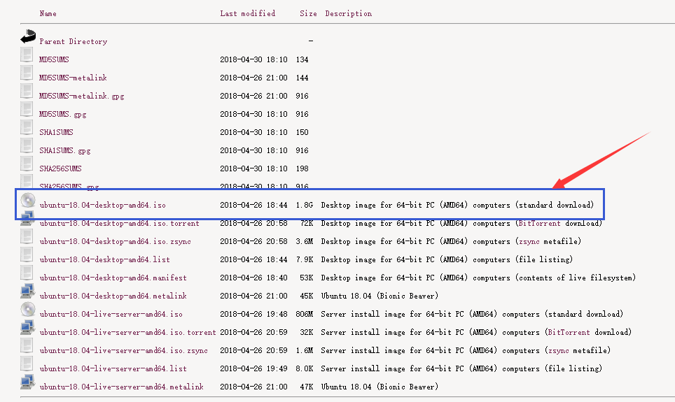 3.2、然后点击(Ubuntu Desktop and Server)的链接:http://releases.ubuntu.com/18.04/ 进入Ubuntu 18.04 LTS的发布详情页面,然后选择“ubuntu-18.04-desktop-amd64.iso”进行下载即可。(这个页面也提供了其他版本及下载方式供选择)