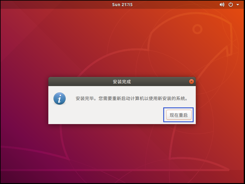 22、稍作等待,安装完成之后,会提示重启,点击“现在重启”;