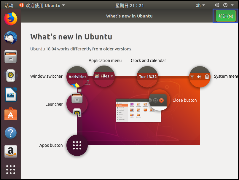 25、之后就会来到我们的Ubuntu 18.04的桌面了,如图大功告成!