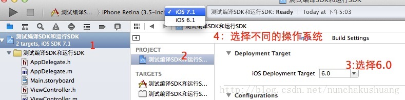 2.如果要在iOS6的系统上运行程序,则应该按照以下方法进行选择: