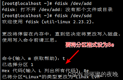 需要用这几个代码:fdisk,pvcreate,vgcreate,lvcreate