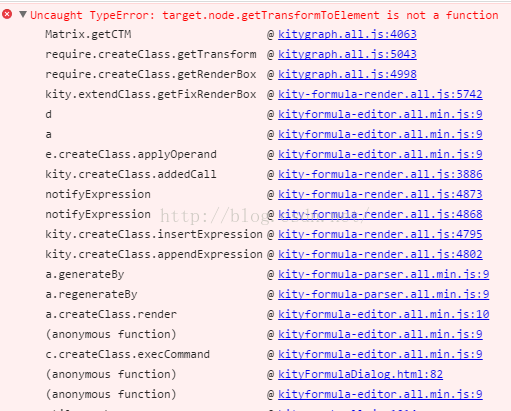 项目中使用ueditor的嵌入公式插件kity formula,今天突然发现chrome运行报错,错误如下: