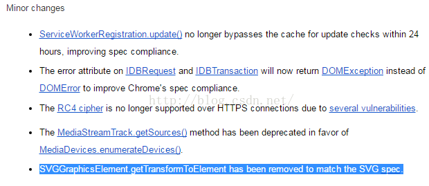 原文如下:SVGGraphicsElement.getTransformToElement has been removed to match the SVG spec.