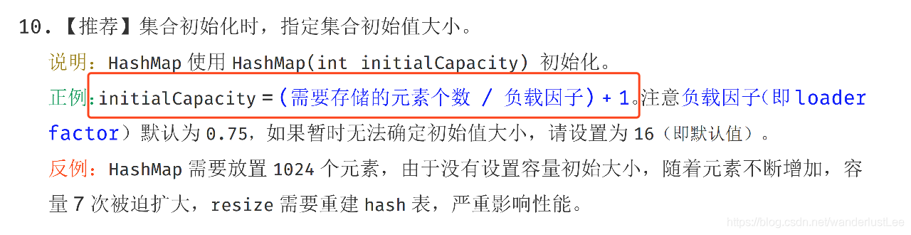 在阿里巴巴Java开发手册中,阿里工程师对于初始化hashmap的容量的建议是: