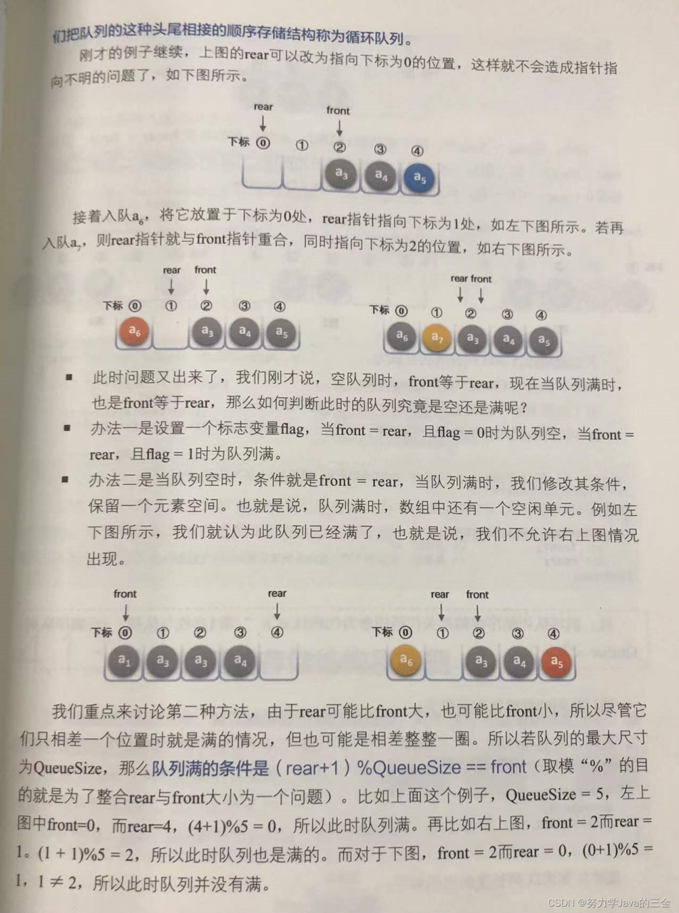 需要注意的细节很多,毕竟front 和 rear的定义变了。而且在添加和取出数据的时候,一定要注意front和rear要取模处理,否则会出现越界异常!!!
