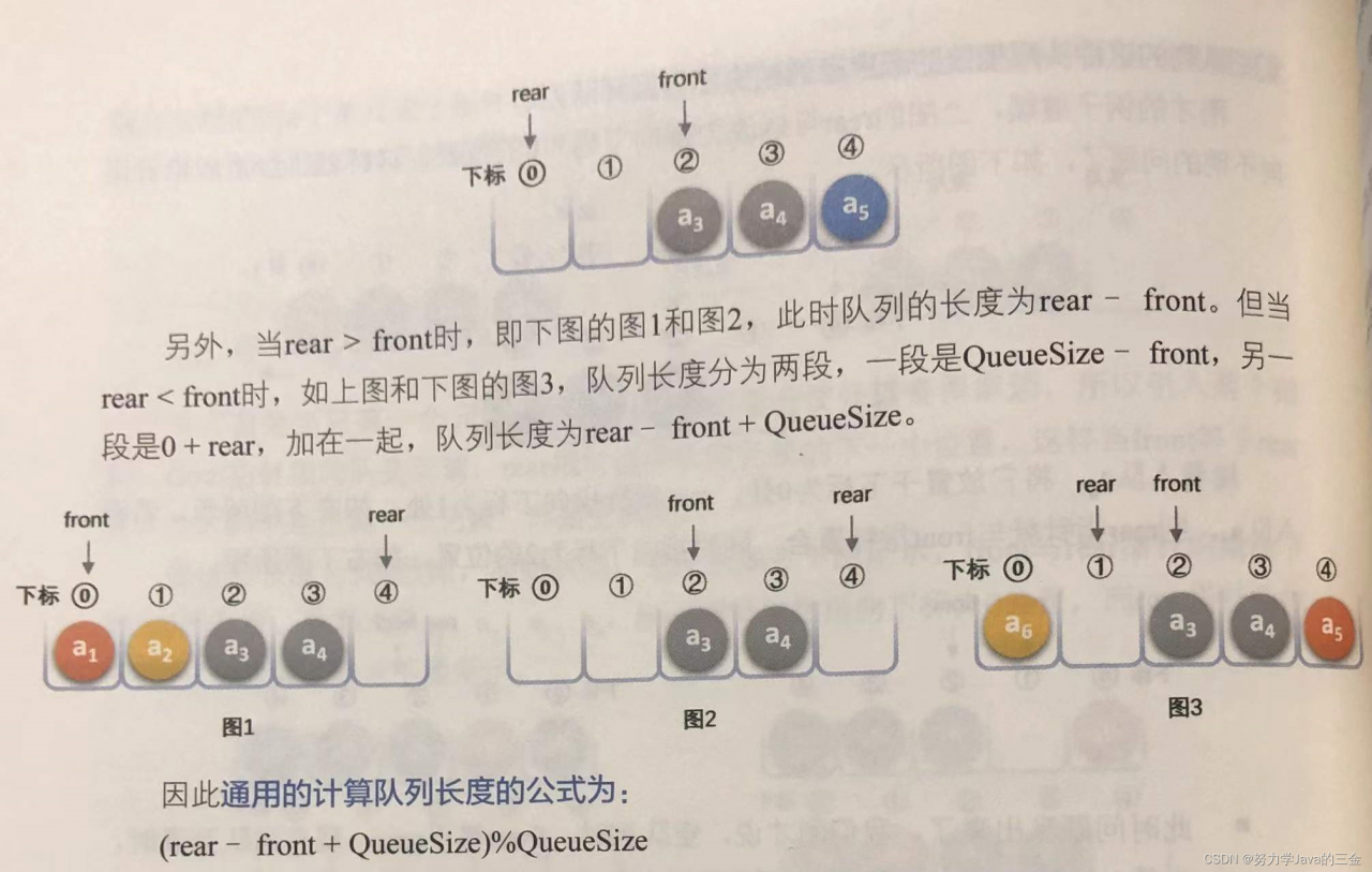 数列中有效数据的个数为:(rear - front +maxSize)%maxSize
